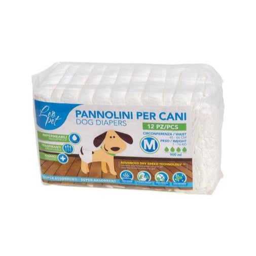 I pannolini igienici sono ideali per evitare che cani in calore o incontinenti sporchino le superfici sia interne che esterne. Con linguette di fissaggio riposizionabili, resistenti al pelo dell’animale. Nucleo super assorbente a tenuta stagna. Vestibilità comoda