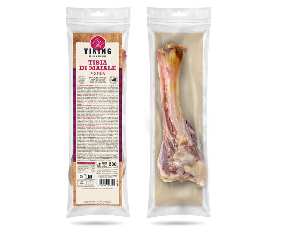 Viking - Leo Pet Tibia di Maiale è uno snack per cani, perfetto per l'igiene dentale. Completamente naturale e totalmente masticabile, questo snack per cani è ideale per la crescita e il mantenimento muscolare così come per la salute dentale e ossea del vostro cane; realizzato con ingredienti 100% naturali. Viene spesso utilizzata come masticabile naturale per cani ed è promossa per la sua capacità di offrire un'esperienza di masticazione soddisfacente. Inoltre, è anche promossa per la sua ricchezza di proteine, che può contribuire a mantenere la salute del cane.