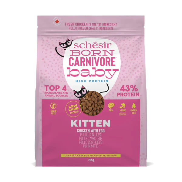 Con un alto contenuto proteico (≥43%) e un basso contenuto di carboidrati (<10%), la gamma Schesir Born Carnivore è l'alimento perfetto per i veri carnivori, anche i più giovani!