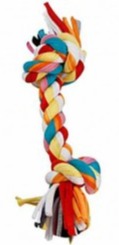 Gioco per cani in cotone intrecciato con nodi alle estremità che il vostro cane potrà divertirsi ad afferrare. Effetto multicolore. Giochi in cotone come questo solo una valida alternativa ai classici giochi per cani in gomma o lattice.