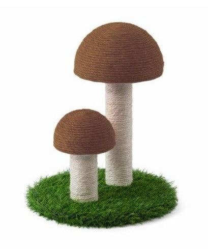 I due funghi di altezze differenti offrono varietà e stimolano l’interesse del gatto.